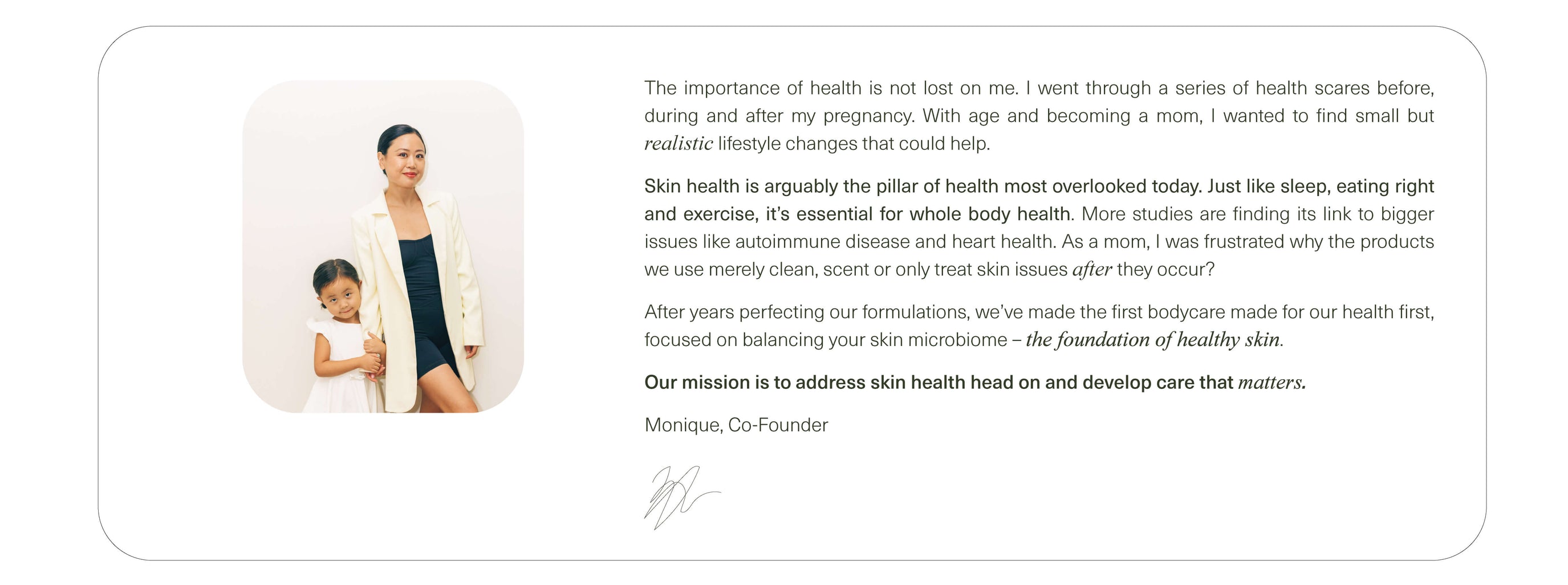 Today’s body care landscape neglects the root of both skin concerns and benefits: the one trillion microorganisms that live on our skin, keep us safe, and make up our skin microbiome. The microbiome is the key to overall skin health: it’s not only our first line of defense against accelerated aging and skin conditions like acne, eczema and psoriasis.1 It’s also essential for glow, smoothness, strength, elasticity and hydration.